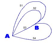 ถ้าวัตถุเคลื่อนที่ จาก A ไป B ตามเส้นทาง S4 จะได้ระยะทาง = S4, ระยะกระจัด = S3