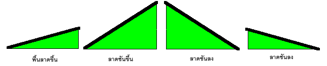 เมื่อเดินขึ้นพื้นเอียงระดับความเอียง หรือความลาดชันมีความแตกต่างกัน บางพื้นเอียงมีความลาดชันมาก บางพื้นลาดเอียงความลาดชันน้อย การลาดเอียง ก็มีทั้งเอียงแบบชันขึ้นหรือลาดลง