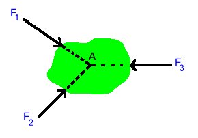 ถ้าแรง F1, F2, F3 กระทำต่อวัตถุ A ถ้าผลรวมของแรงทั้งสามที่พบกันที่จุด 0 มีผลทำให้เกิดแรง ผลลัพธ์มีค่าเท่ากับ 0 วัตถุนั้นจะอยู่กับที่ เสมือนไม่มีแรงมากระทำ แต่ถ้าผลรวมของแรงที่มากระทำไม่เป็นศูนย์ วัตถุก็จะเคลื่อนที่ไปตามแนวแรงผลลัพธ์นั้น